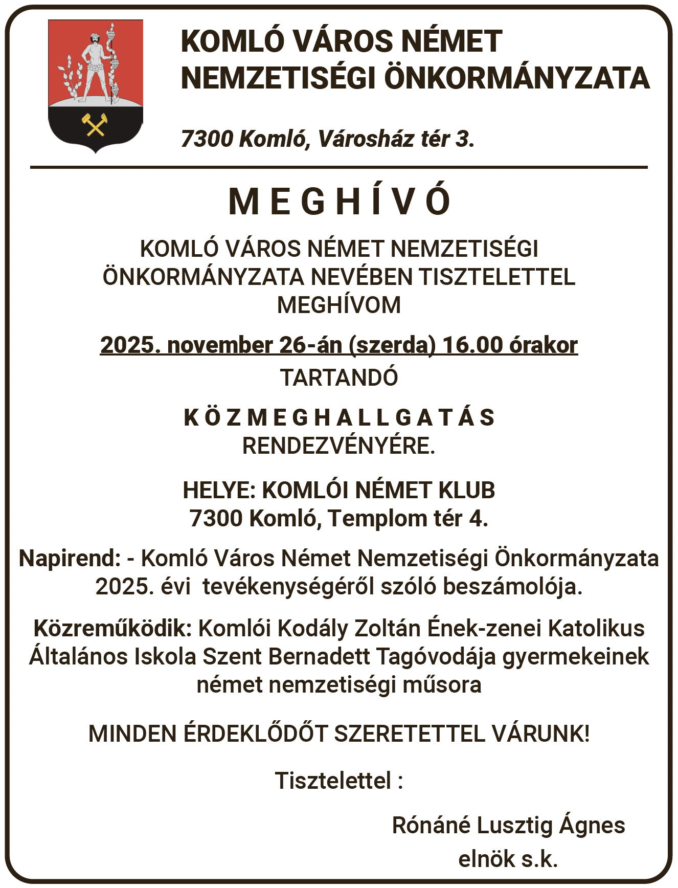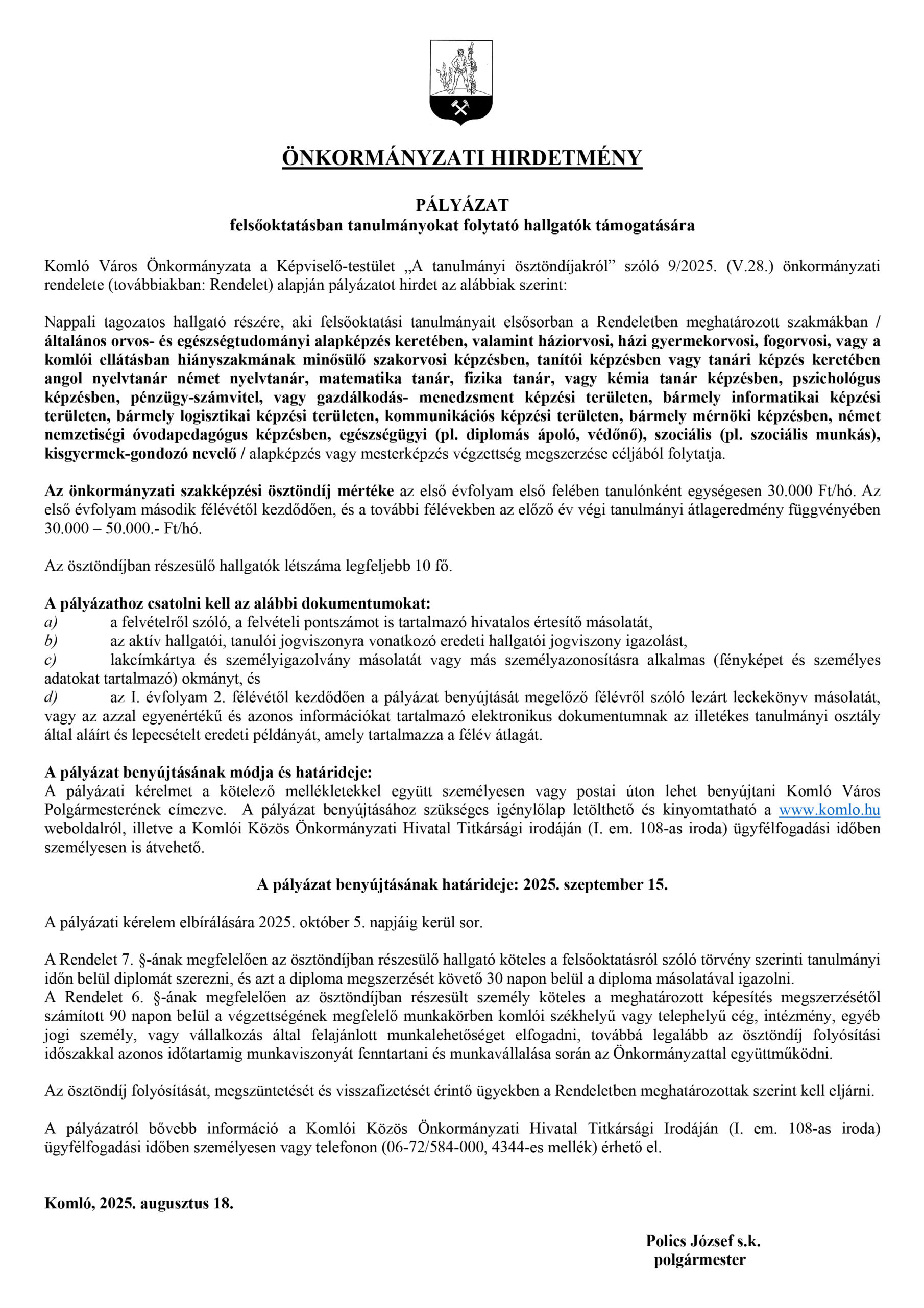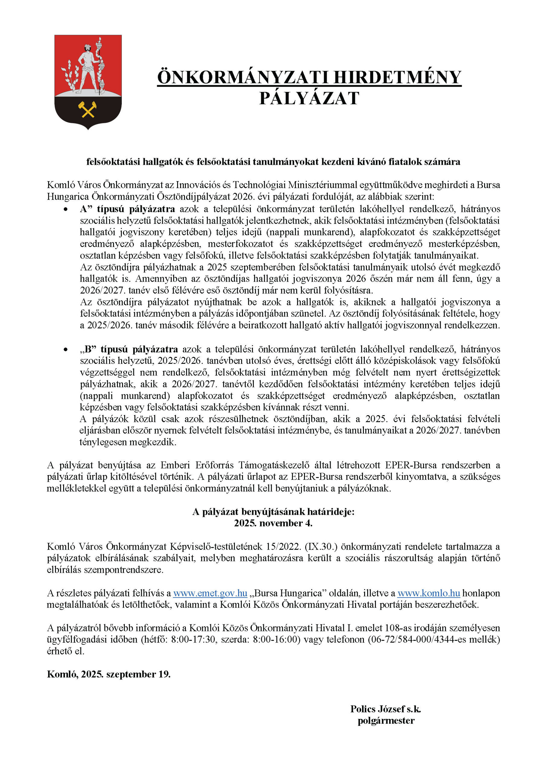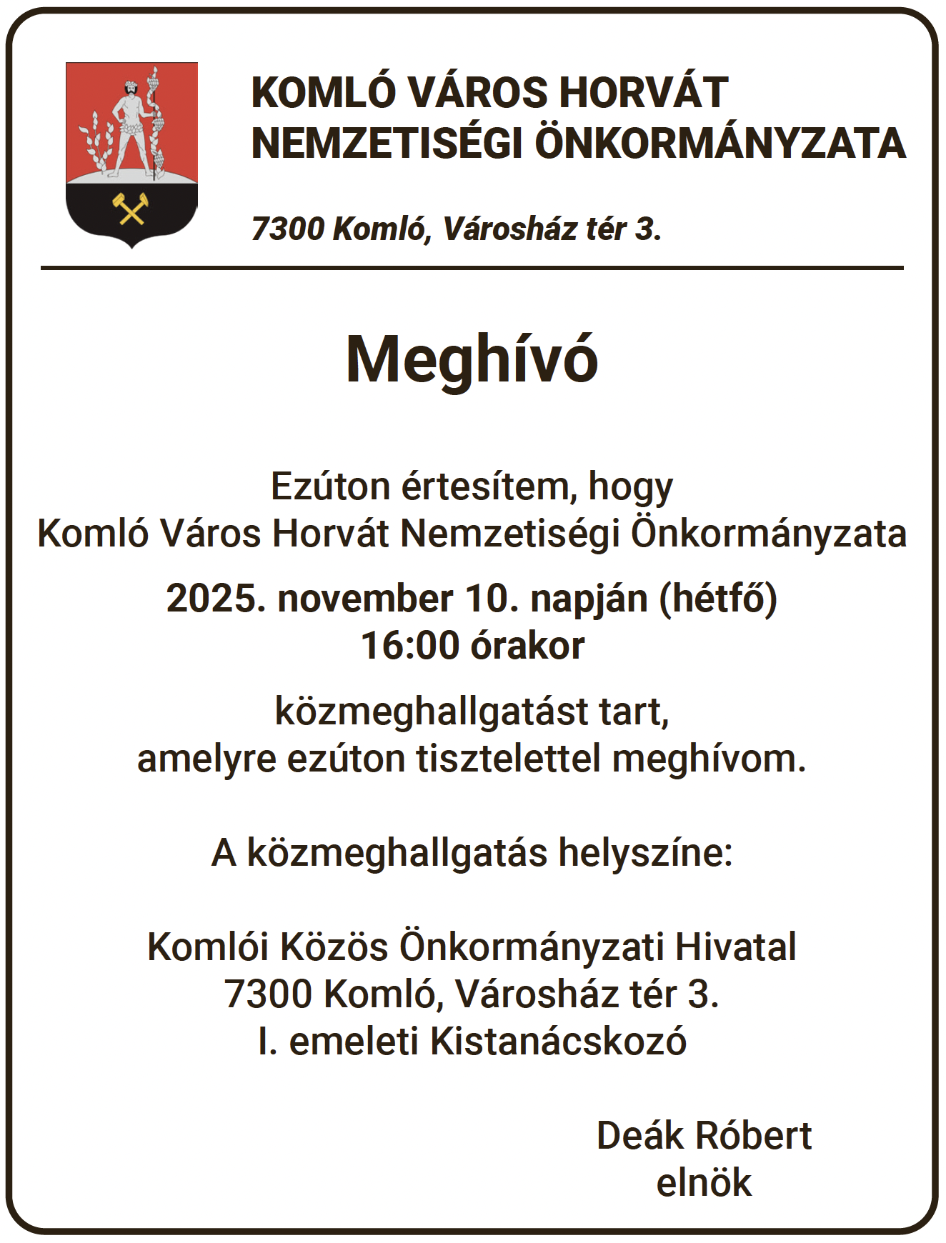 Komló Város Önkormányzatának aktuális hirdetményei Archív hirdetmények Keresés erre: Mecseki bányászati klaszter közösségek háza } gyógyszertári ügyelet } állatorvosi ügyelet komlói időjárás légszennyezettség i vasúti menetrend i autóbusz menetrend